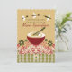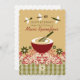 En mixtrande skål med valskårar och köksredskap på en blommig, pläterad och polka prick, röd och grönt med gammaldags känsla på detta julkort eller Julhälsningar för en bakverk eller bageriaffär, köksmässor, kockar eller andra kulinariska pros, eller för att lägga upp din lista med dina hemgjorda kakor, kakor, paj, såser och andra maträtter.