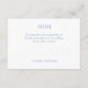 Ge det här kortet, din egen personliga beröring. Den här chicen har 5 tomma punkter som du kan fylla anpassningsbarna för hand med vattenfärg eller något annat medium. Framsidan har ett typsnitt i dammblå contemporary mot en vit bakgrund, medan baksidan innehåller ett monogram för vit blommigt mot en dammblå bakgrund. Denna punkt ingår i en bröllop-svit som omfattar inbjudningar och andra produkter.