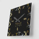 Blank Glans & Silver Sax Mønster Frisør Fyrkantig Klocka