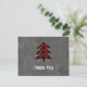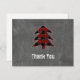 Använda detta moderna och trendig blankt tackkort-kort som innehåller en röd buffelplatta, Julgran och ord "Tack" på en kritbakgrund. Kortets baksida har samma Julgran med en vit övertäckning, skapar att skriva ditt meddelande enkelt och ett av ett slag.
