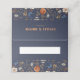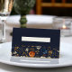 Det finns en vit panel på framsidan av kortet för handskrivet gäst namn. En vacker blommigt i mörk blått och rostigt format med ett modernt teckensnitt på baksidan. Böhmen, land. Bohemian Navy Blue Terracotta Bröllop Place Card.