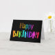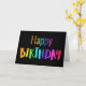Lagrar upp på denna roligt och ett fantastiskt neonregnbågskort Grattis på födelsedagen, med anpassningsbar som tillval. Du kan antingen skriva ett meddelande för insida eller beställa som med ett tomt insida för att anpassa senare. Använda Verktyg i designläge om du vill ändra teckensnittet färg, stil eller storlekt, eller om du vill ändra bakgrunden till bakgrunden färg. Det här anpassningsbarna-födelsedagskortet kan beställas i många-storlekar och är perfekt för människor i alla åldrar. Från Heard_.