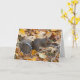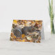 Ett tomt hälsningskort med ett foto av en grått ekorre som munkavlar på ett frö som han hittade bland de fallna löven på hösten.