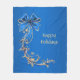 Flower Helgdag Fleece Blanket, vackert blå Guld-blomma