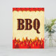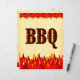En anpassningsbar-flygare-mall med anpassningsbar-refleskripten brev och ord BBQ i westerna flammande brev med bilder av rött och orange-flammor vid grund i designen på en faux-bakgrund. Baksidan har plats för din partiinbjudan data och mycket mer. Anpassa den om du vill lägga till mer text, ändra typsnitt, färg i bakgrunden med mera.
