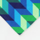 En liten filt av fleece med en färgstark, ombre mönster-design av chevroner i kalkgrönt, royal turkos, havsblått och himlar blått.
