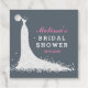 Elegant vit snöre bröllop bridklänning över gråttets bakgrund. Mall för möhippor för anpassade.