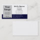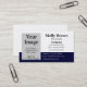 En tom mall för visitkort i vitt och marint blått, lägg till en egen bild eller logotyp för att anpassa dessa affärskort.