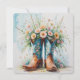 Blanka cowgirl-temat inbjudningskort med en bukett av blommor och stövlar.