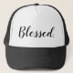 Gör en påstående medan du bär den här truckerkepsen. Den här designen har ord "välsignad" i ett modernt svart skript. Du kan anpassa eller lämna som det är. Perfektens gåva till din kristna familj och vänner.
