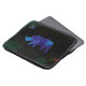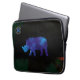 En blå och lila noshörning av noshörningar i svart abstrakt med en "R"-brev inuti en svart cirkel - coola zoo-objekt efter blandad zstore