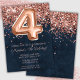 Blåpartiets inbjudan till Ro-marinen 4e födelsedagen och ro guld-elegantens moderna 4e födelsedagen-partiinbjudan till en 4-årig flicka med moderna skript- och roligt-fotballonger.