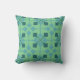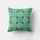 Dekorativ kudde har en modernt utformning av pilar i mitten av århundradet i två blå nyanser på fält i grönten för sjöcellsfisk.