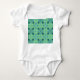 Denna bodykostym i baby har en modern utformning av pilar i mitten av århundradet i två blå nyanser på fält i grönten för sjöcellsfisk.