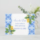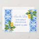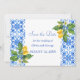 Medelhavets blå plattor och citroner bröllop spara datum.