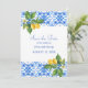 Medelhavets blå plattor och citroner bröllop spara datum.