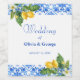 Medelhavsblå plattor och citroner bröllop Vin-etikett.