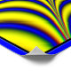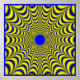 Optisk Illusion: Bland annat sak är den spikformade bilden och det föränderliga blå och gult färg ge en stark pulserande rörelse.