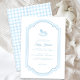 Fira en ny ankomst med den här elegantens blåa rockande babyduschinbjudan. Designad med en mjuk gingham gräns och klassisk ram är detta traditionella stil perfekt för en barndusch. Anpassa med dina uppgifter om en tidlös inbjudan som familj och vänner kommer att passa. 👉 Se mer traditionella babyduschdesign i vår klassiska pojksamling (kopiera och klistra in länken i webbläsaren):https://www.zazzle.com/collections/119611863398279099