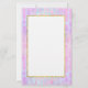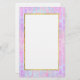 Papper av papper med abstraktens bakgrund mönster. Rosa lila och blå vattenfärger utgör denna konstnärliga design som har rektangulära former av lodrät på en mjuk bakgrund. En rektangel överst med faux guld foil gräns, så att du kan skriva inuti.
