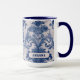 Elegant vintage Blue toile de jouy monogram mugg. Vackra sömlösa toile de jouy mönster Blue på vit bakgrund.Toile-utskrifter är för närvarande en ständig vrede, detta är en elegant och en vintage toile de jouy med exotiska dammmönster, en roligt stil som för närvarande är på väg för hemdekaler, kläder, mobila och Ipad-väskor, inbjudningar och mycket annat. Utformningen är klassisk och tidlös med bedövande färg. Du kan ändra all text färg och typsnitt, klicka för att anpassa texten ytterligare under det textanpassningsområde som kommer att ta dig in i designen verktyg. En unik gigantisk gåva till födelsedag, helgdagar och alla speciella tillfällen. Vare sig det gäller valentines day, jul eller som en gåva i allmänhet är det en underbar gågata