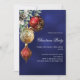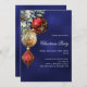Gratulera till säsongens glädje med våra elegant julfestinbjudningar, perfekt för sammankomster med familj och vänner. Den här inbjudan har en fantastisk, ojämn mörk blått bakgrund, som har lagts till med festive Red och guld baubles, lush grey och en charmerande gräs-kon. Lägg till ett personligt tryck genom att anpassa det med din händelseinformation för ett minnesvärt helgdag inbjudan. Med den här designen får du en aning klassisk helgdag som anger tonen för ett varmt och välkomnande firande.