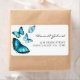 Bröllop-adressetikett med blå romantiska vattenfärgsfjärilar.
