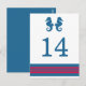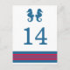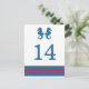 Postkort för elegant och klassiskt Bordsnummer för sjöhästen Bröllop med ett par enkla sjöar och en rad rand i mörk marin blått och rött. Det är enkelt att anpassa det här sjöstrandkortet med bord med information om bröllop. Om du vill ha fler anpassningsalternativ klickar du på knappen Anpassa.