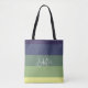 Blås + Gröntar Färg Blockera Rand Monogram Namn Tygkasse