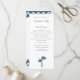 Blåa Tropical Handflatan Träd Destination te length bröllopsprogram with chevron zigzag mönster on Back. Elegant Beach Wedding Program
