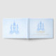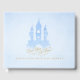 Blå sagoårband "Gång On A Time", babyduschgäst bok för ett pojke i blått och guld, med vackra typografiska blommor. Skripttexten lyder "Gång On A Time" med ett magiskt slott.