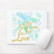 Den nätt blåttfågeln, hjärtor, blommor och banddesignen av blått och mintgrönt med guld- text, som läser "mamman, är kärlek" på mammaT-tröja, tote bags, mousepads, magneter, och annan mammagåvor och dräkt.