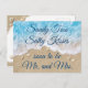 Sandy Toes Salty Kisses kommer snart att bli Mr. Och fru accentuerar i bröllop spara datum mot bakgrund av akvblått vatten, strandsand, sjöslingor och svält, skapar det perfekt för strand-, tropisk- eller destinationsbröllop.Baksidan av detta Spara datum Postkort dekoreras ytterligare med mer strand-, strand- och sjögräs. Om du behöver ytterligare samordningsposter för bröllop kan du bara kontakta oss på prettyfancyinvites@gmail.com med din begäran.