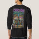Det här är inte bara en skjorta; det är en tidsmaskin att bära. Designen fångar Chicagos frenetiska, vackra puls – "Windy City Jungle". Den sammanför legenderna från stadens siluett, från Willis Tower till pariserhjulet på Navy Pier, men ser på dem genom ögonen på de människor som faktiskt får staden att fungera.
