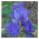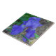 Ett foto av en vacker blå iris-blomma som är tryckt på en keramisk bricka.