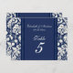 Elegant- och klassiskt mörk, marinblått och benvitt bordsnummer för grädde i bröllop med klassiskt mönster för dämpning av blommigt. Anpassa korten om du vill skapa anpassningsbarnas bordsnummer-kort för varje bord vid bröllop. Lägg till datum för namn och bröllop. Mönster finns i ett stort antal matchande bröllop-produkter.