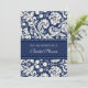 Inbjudningskort för möhippa i elegantens mörk marin blått och kräm benvitare modersmjölkningsmönster för klassisk blommigt, elegant och feminin, anpassade med duschdetaljer. Finns också i tackkort och inbjudningar till brudens sida.