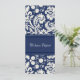 Elopement-meddelandekort i elegant mörk, marinblått och kräm, benvitt dammmönster i den klassiska blommigten, fullt anpassade med dina namn- och bröllop-detaljer, perfektens sätt att tillkännage ditt bidrag till vänner och familj. Finns i ett brett urval av matchande bröllop-produkter.