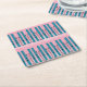 Blåskidor på snö med rosa pappra underlägg. Roligt party torka för vinter eller skidåk firande.