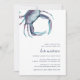 Kustduschinbjudan för barn i chicen innehåller en illustration av vattenfärgen blåa krabba i vintage, med information om babyduschdetaljer i klassiskt marinblått. Perfekt för strand-, sommar- eller nautisk nöjesdusch, dessa inbjudningar till stil vid kusten går tillbaka till fast hamnblått.