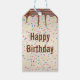 Färgfyllda godis sprinkler på vitt med droppande chokladisering för födelsedag. Text är redigerbar