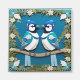 Färgrik papperkonst som avbildar två blåskrikor som sitter på en gren, inramad i en dekorativ ram. Designen visar upp intrikat hantverk, levande färger och harmoniska detaljer som frammanar naturens skönhet och kreativitet.