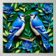 Färgrik papperkonst som avbildar två blåskrikor som sitter på en gren, inramad i en dekorativ ram. Designen visar upp intrikat hantverk, levande färger och harmoniska detaljer som frammanar naturens skönhet och kreativitet.