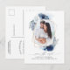 Dusty och marin blå blommigt spara datumet för fotovykort