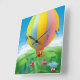 Konstnär: Paul Vass | En liten pojke och flicka som flyger i en luftballong över en gård