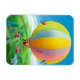 Konstnär: Paul Vass | En liten pojke och flicka som flyger i en luftballong över en gård