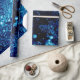 Smaklig gåva som omsluter papper för tillfälle, firande, födelsedag, jul, bröllop.. Vinterfoto med frusna bubblor blå gnistor.