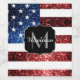USA flagga röd och blå gnistor glitter Monogram Vin-etikett. Anpassa sparsam etikett med ditt första märke och namn. USA flagga i röd och blå faux sparkles glitter. Vi användor bilder av gnistor och inte på glitter.