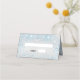 En modern elegant. Faux silver tittar bakgrund som dekorerats med blått faux glitter damm. Anpassa och lägg till gästerna namn och deras bordsnummer för hand.