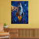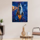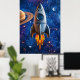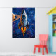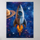Det är ett litet steg för inredning, ett jättekliv för din vägg. Denna lekfulla affisch visar en klassisk raket som flyger genom en galax av skimrande stjärnor och virvlande planeter. Med djärva, intensiva färger och serietidningscharm är den perfekt för barnrum, kosmiska dagdrömmare eller vem som helst som vill lägga till en stänk av science fiction-nostalgi i sin miljö.